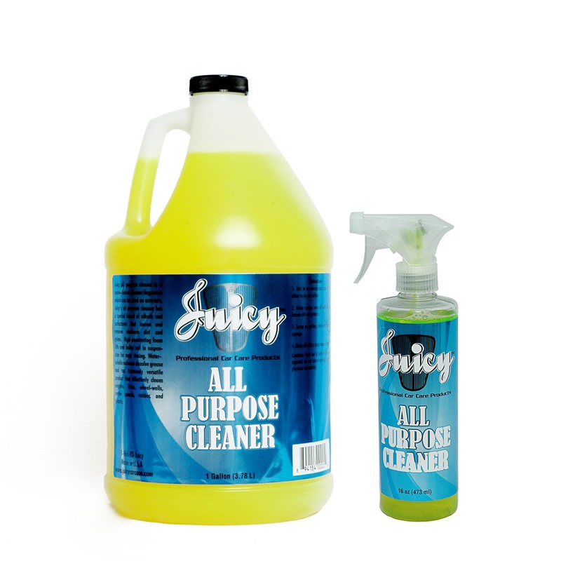 Juicy All Purpose Cleaner is a water-based cleaner and degreaser which can be used on exteriors. Juicy’s All Purpose Cleaner has a special blend of alkalis and surfactants that loosen and remove stubborn dirt and grime.