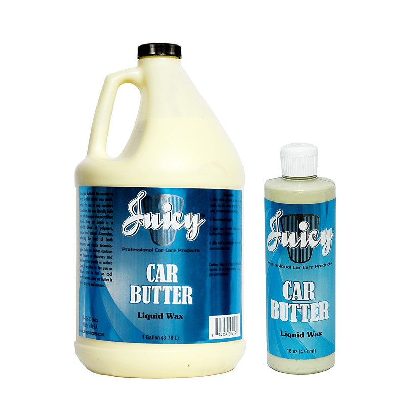 Juicy car butter is the easiest to use, shiniest liquid wax available. For use in any weather condition, this wax literally falls off with the wipe of a microfiber towel. Juicy car butter is a special blend of polymers, resins and natural Carnauba, offering the best of both modern and classic technologies. Juicy car butter contains no cleaners or abrasives, and will not stain plastic or rubber. Car Butter can be applied in the sun or shade, and in hot or cool temperatures. Juicy car butter is easy to apply and remove.