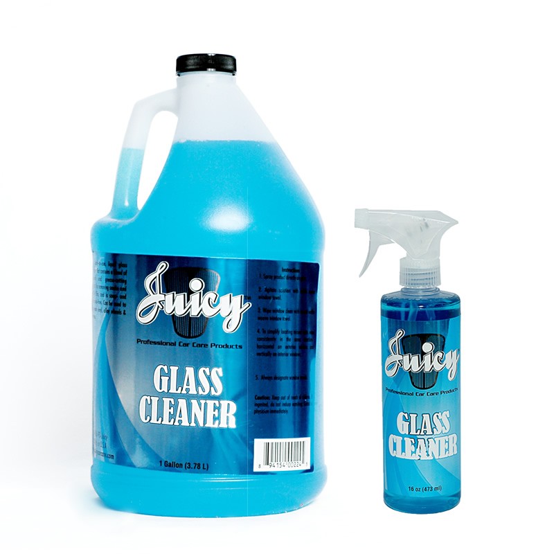 A ready-to-use, liquid glass cleaner that contains a blend of alcohol and grease-cutting agents for removing smoke and traffic film, and is soap and ammonia-free. Juicy Glass Cleaner can be used to degrease vinyl, alloy wheels & chrome.